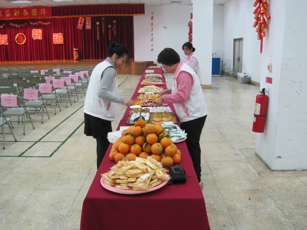 團拜前,公所工作人員, 將美味的食物呈現給大家!