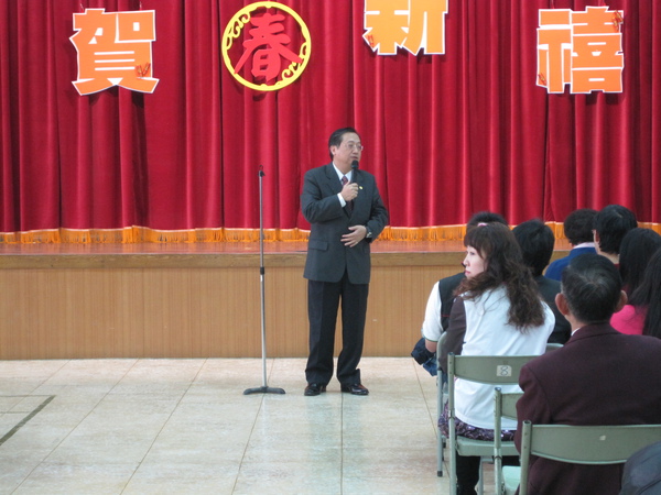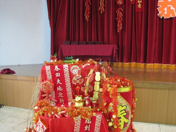 美美的講台佈景,有沒有很有新春氣象,紅咚咚呀!