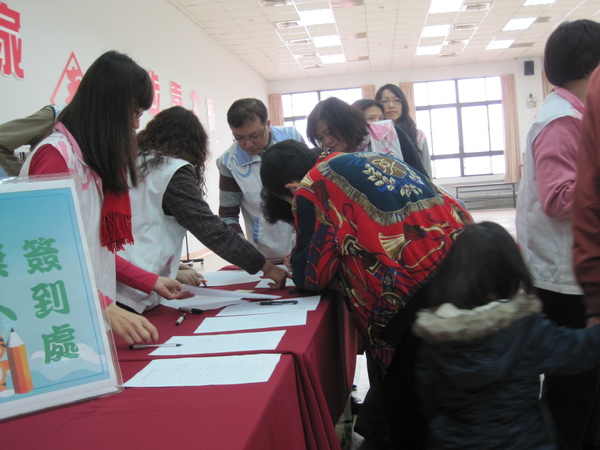 大家排長龍想領取的可愛春聯攤的周爸爸~~~~