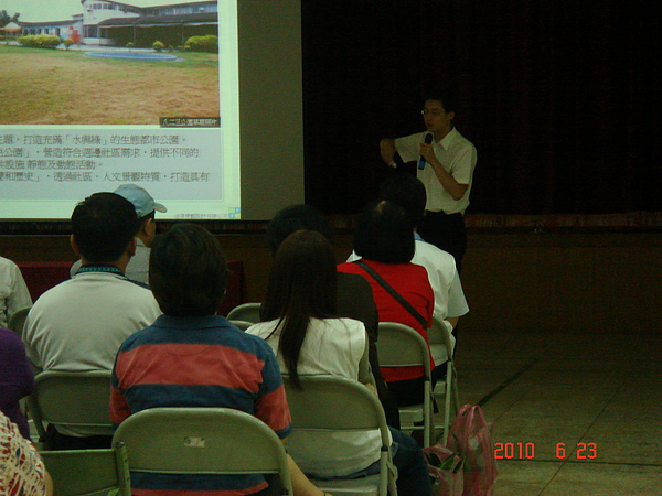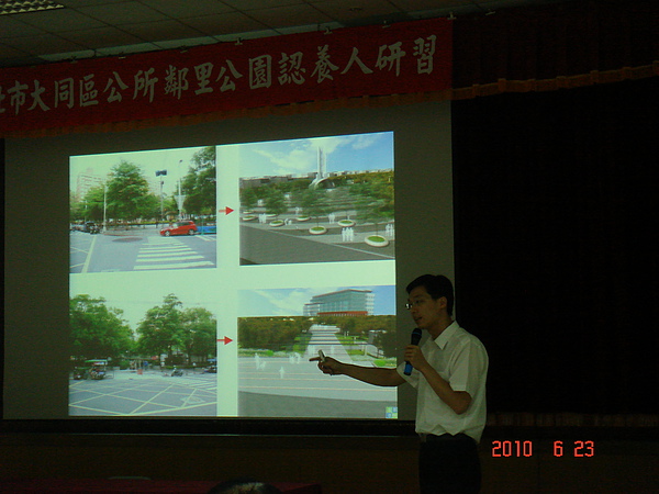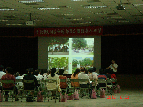 本所於99年6月23日舉辦「鄰里公園認養人研習活動」,特別請到吳俊偉先生,來本所講解「城鄉公園綠地景觀維護管理」。