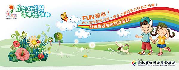 臺北市政府產業發展局訂於暑假期間為本市親子規劃的「2011親一夏台北暑期系列活動」!並將於6月25日(六)下午2時30分在花博公園圓山廣場(捷運圓山站1號出口)舉辦開幕園遊會,另有花草舞蹈律動、腦筋急轉彎、帶動唱跳、神奇魔術…等表演節目,歡迎大、小朋友牽手一起來參加觀賞!
